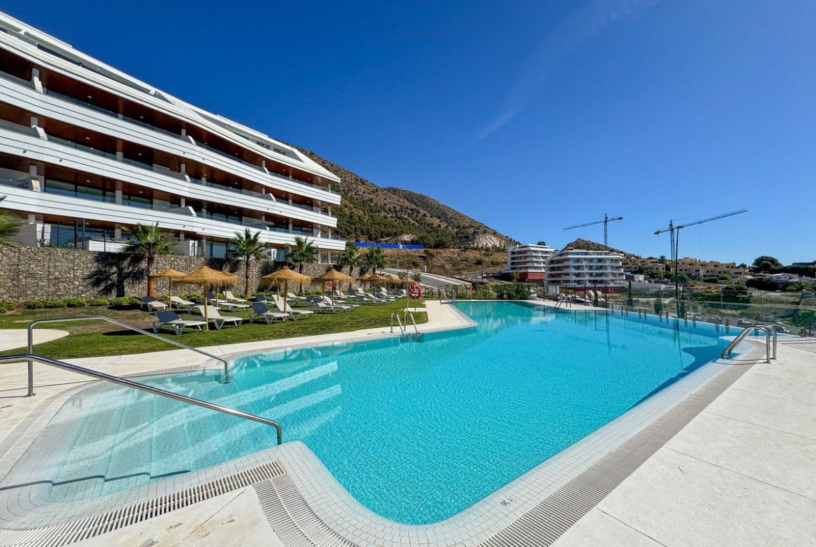 Myytävänä moderni ja muuttovalmis kahden makuuhuoneen ja kahden kylpyhuoneen 3. kerroksen huoneisto upeasta Higueron West -rakennuksesta. Huoneiston ilmansuunta on etelä ja sieltä on henkeäsalpaavat panoraamanäkymät alas Välimerelle, jonne on vain 1,5 km matka.