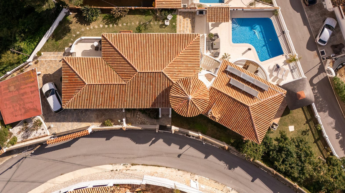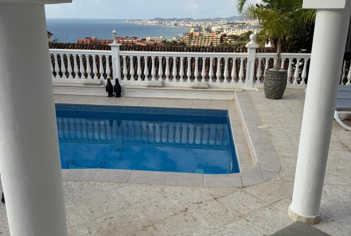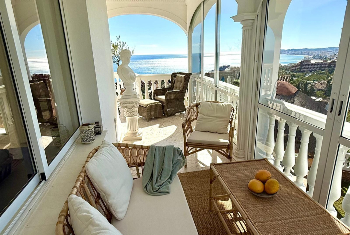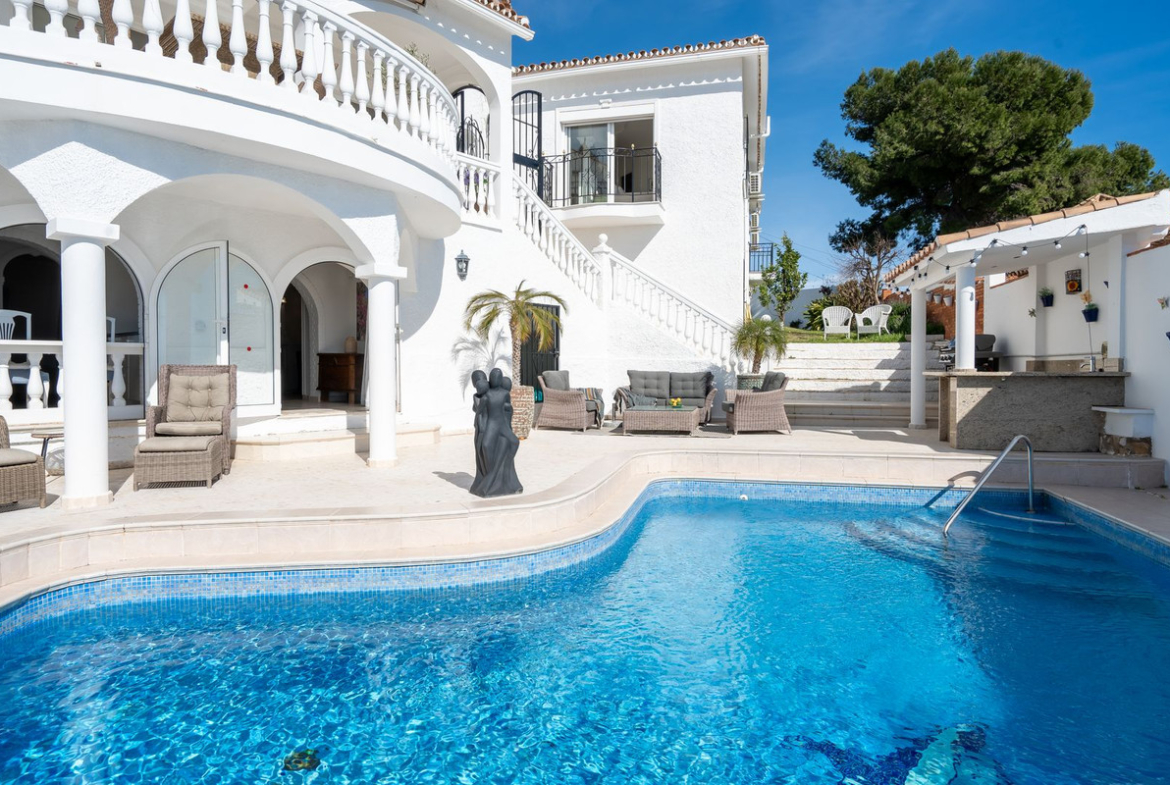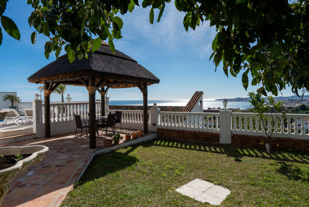 Myytävänä upea villa panoraamamerinäkymillä La Capellanian alueelta Benalmádenasta. Villa tarjoaa henkeäsalpaavat panoraamanäkymät koko Fuengirolan lahdelle.