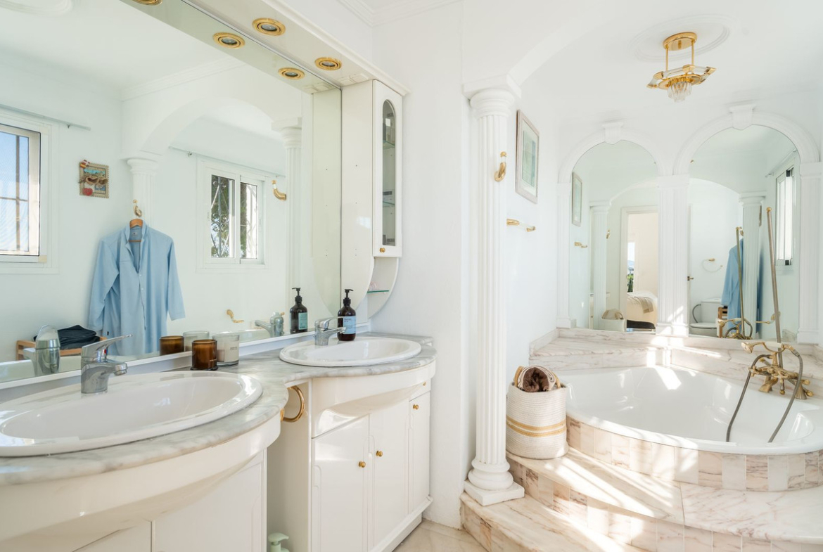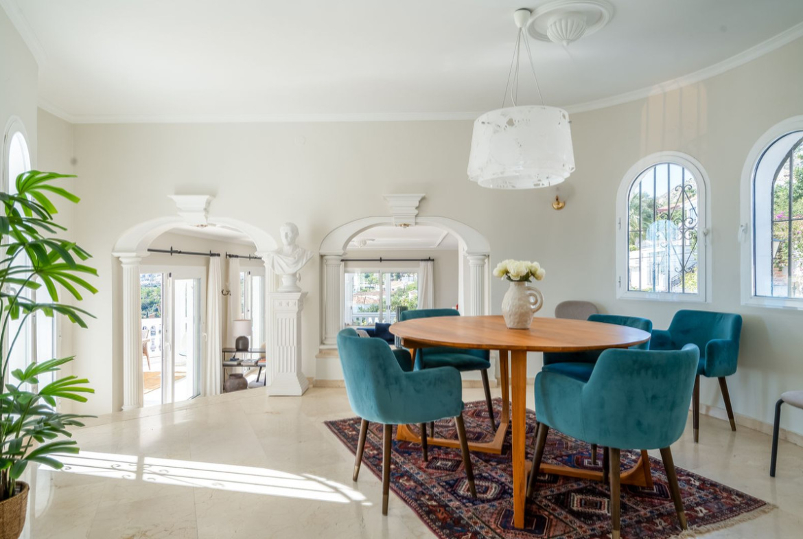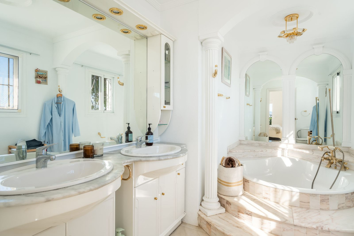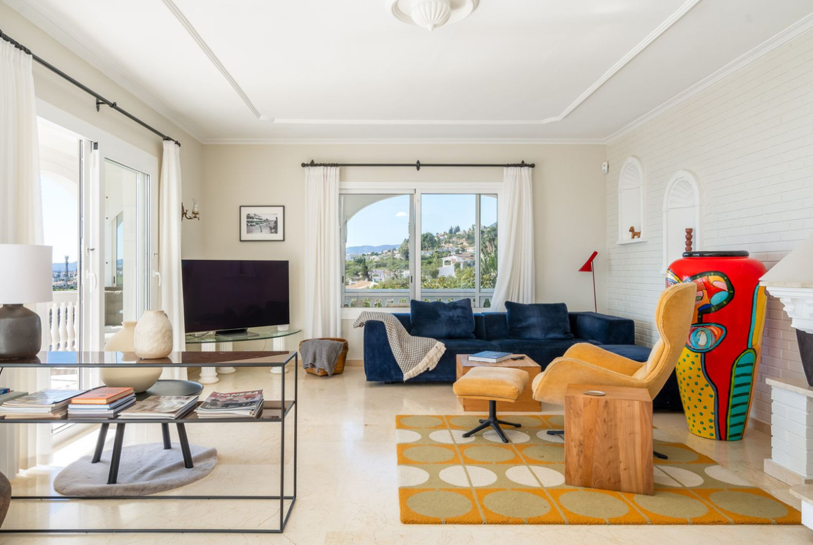 Myytävänä upea villa panoraamamerinäkymillä La Capellanian alueelta Benalmádenasta. Villa tarjoaa henkeäsalpaavat panoraamanäkymät koko Fuengirolan lahdelle.