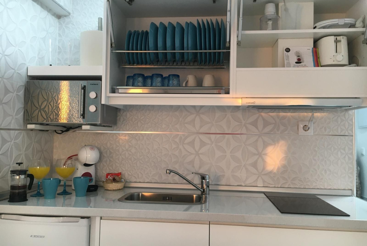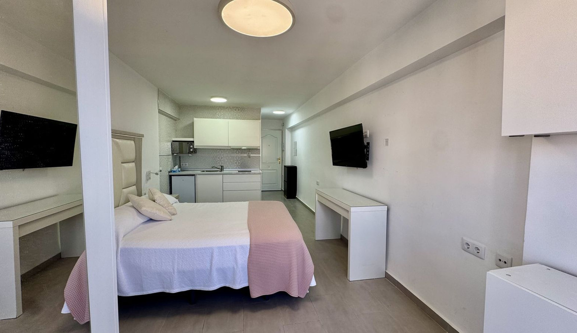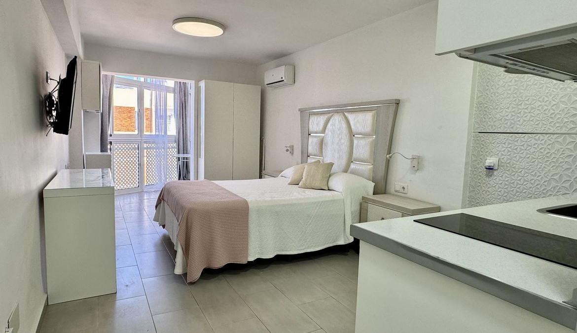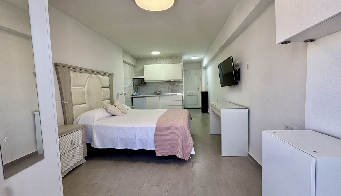 Myytävänä ylimmän kerroksen (11. kerros) remontoitu studio-huoneisto Arroyo de la Mielistä Benalmádenasta. Huoneiston ilmansuunta on lounas, ja sieltä on upeat näköalat merelle, vuorille ja kaupunkiin.